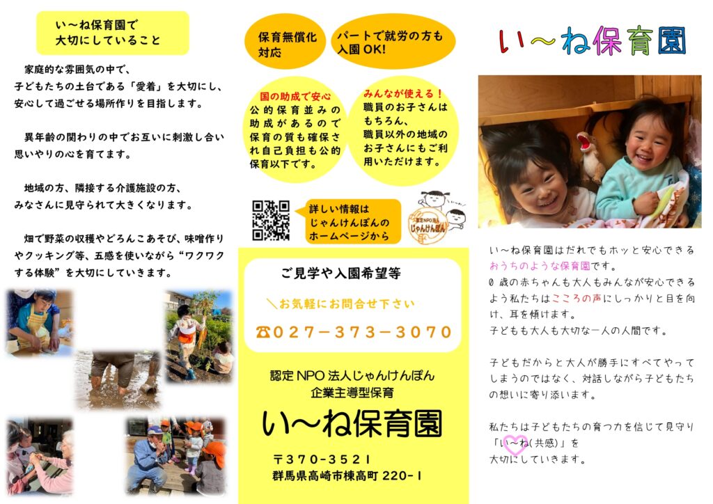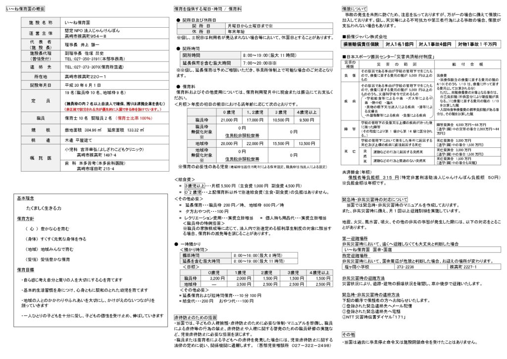 い~ね保育園の案内はこちらからダウンロードできます。